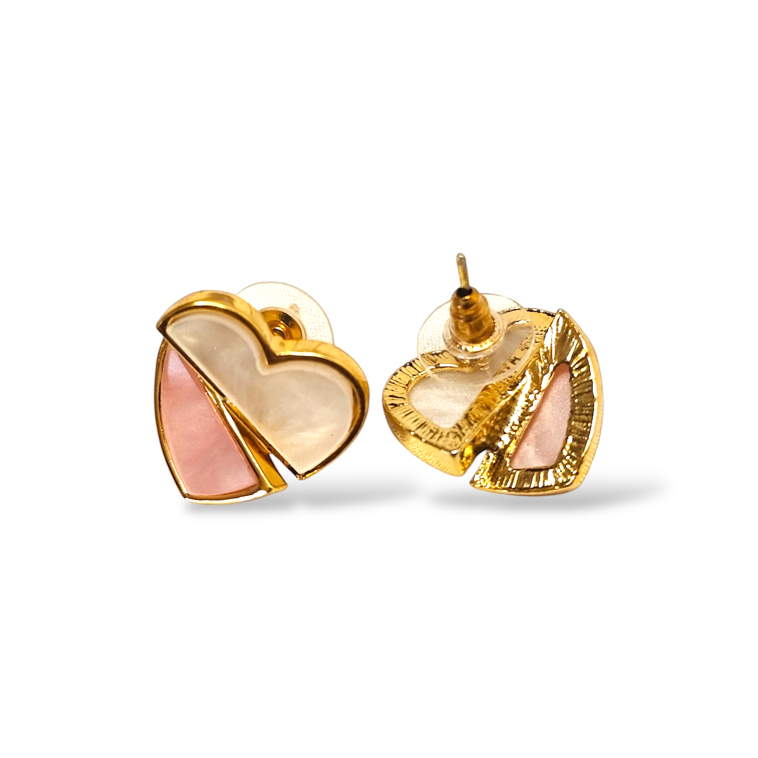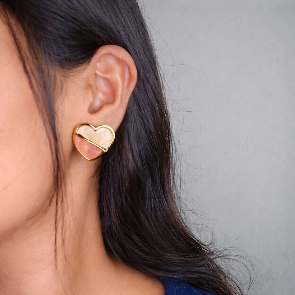 These aren’t your average heart earrings. We’ve combined a creamy pearlescent white with a soft blush pink, separated by a sleek gold line for a geometric twist. They are small enough for office wear but unique enough to spark compliments at brunch.