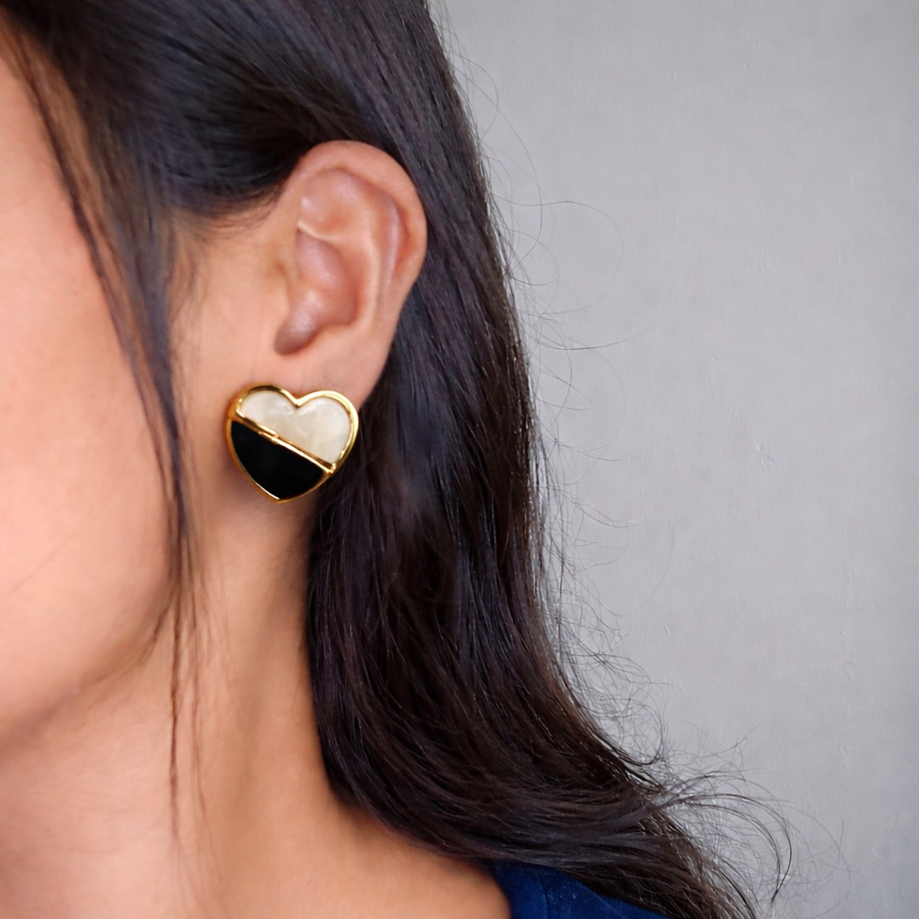 • Design: Split-tone heart with iridescent white and onyx-black finishes.